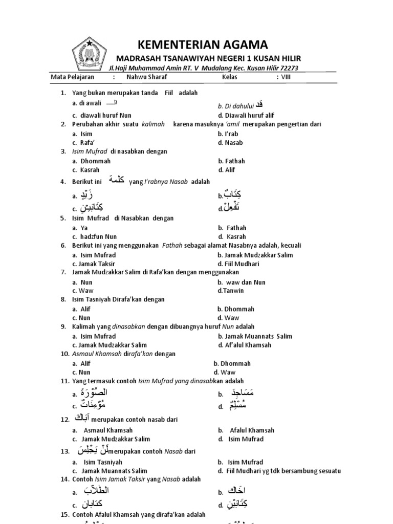 Contoh soal pas 1 kelas x ma/sma/smk/sederajat. 1 penegertian nahwu, shorof, kalimah (kata), jumlah (kalimat). Cara memahaminya adalah dengan menggunakan ilmu nahwu dan shorof. Silabus nahwu shorof kelas 7 k13. Sejarah kebudayaan islam satuan pendidikan :