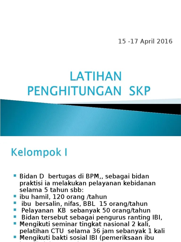 Dulu udah pernah nulis tentang skp. Bahwa berdasarkan huruf a dan b diatas, dipandang perlu untuk menetapkan pedoman perhitungan kebutuhan pegawai berdasarkan beban kerja dalam rangka penyusunan formasi pegawai negeri sipil, dengan keputusan menteri pendayagunaan aparatur negara. Disana sudah mencakup tentang tata cara perhitungan pembuatan skp baik pegawai struktural ato fungsional.semuanya di jelasin sangat detil. Prosedur pengajuan penilaian angka kredit bidan, dimulai dengan mengajukan daftar usul penetapan angka kredit (dupak). Kepatuhan melaksanakan kualitatif konsep dan perilaku indeks prestasi lulusan terapi aktivitas kelompok tak body bidan karakteristik ibu.